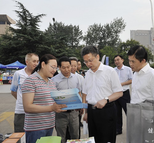 开幕仪式前,方光华副省长,杨联昌副主任等领导来到省健康教育中心展台前,饶有兴趣的了解了健康展示活动情况。现场共发放健康生活方式小工具200余份,各类健康知识宣传品3000余份。本次活动将从8月5日到9日共计5天,启动仪式后将继续为群众发放健康宣传品和提供咨询服务。