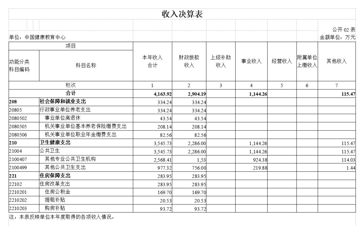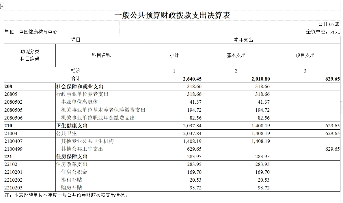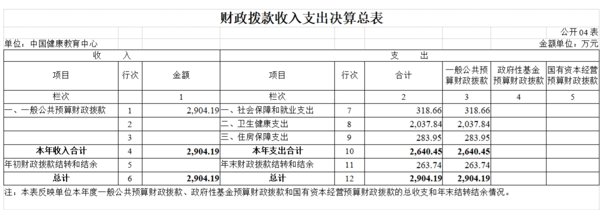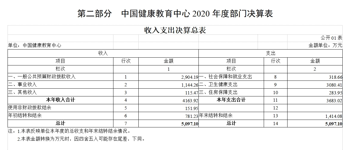中国健康教育中心2020年度部门决算