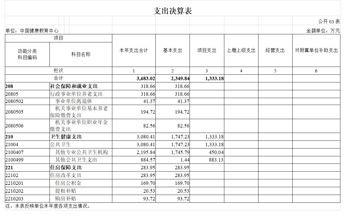 (十一)卫生健康支出(类)公共卫生(款)其他公共卫生支出(项):反映单位除上述项目以外的其他用于公共卫生方面的支出。