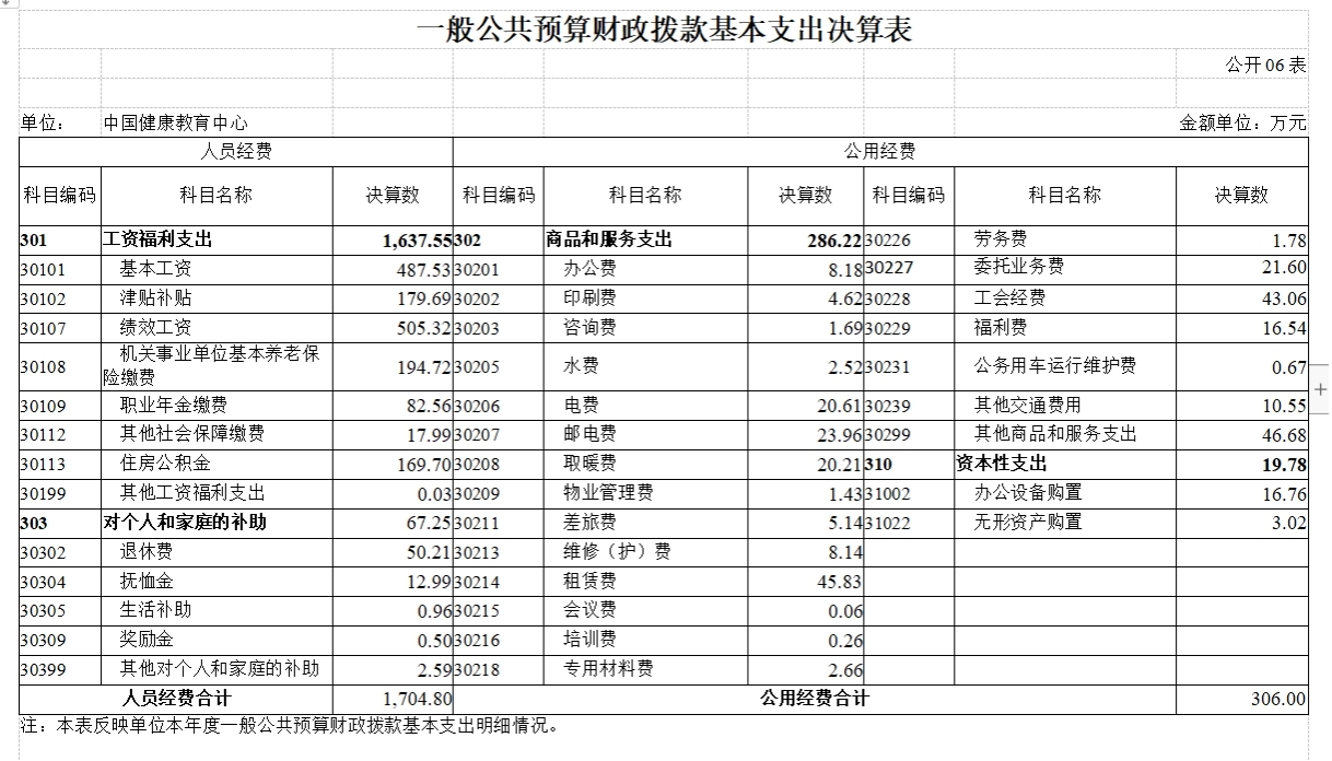 中国健康教育中心2020年度一般公共预算基本支出2,010.80万元,其中: