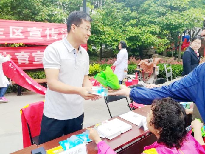 中心代表现场发放了《中国公民健康素养—基本知识与技能(2015年版)》、《减盐健康教育手册》等材料,以及控盐勺与控油壶,还主动向社区居民宣传了“三减三健”等健康知识,深受社区居民欢迎。
