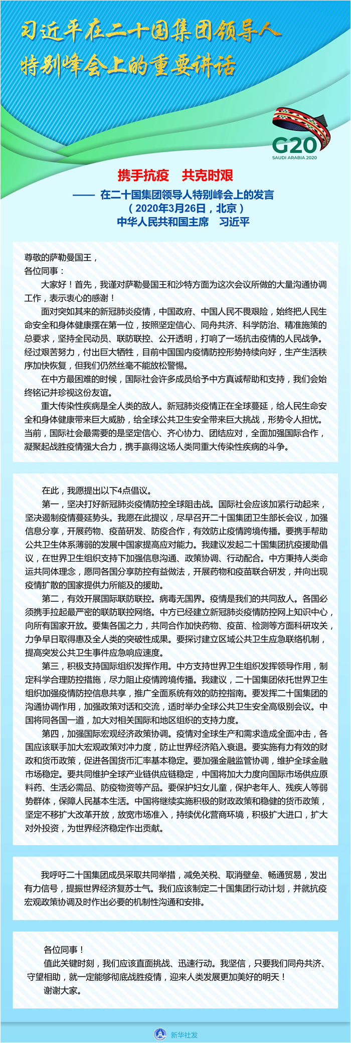 习近平在二十国集团领导人特别峰会上的重要讲话(全文)