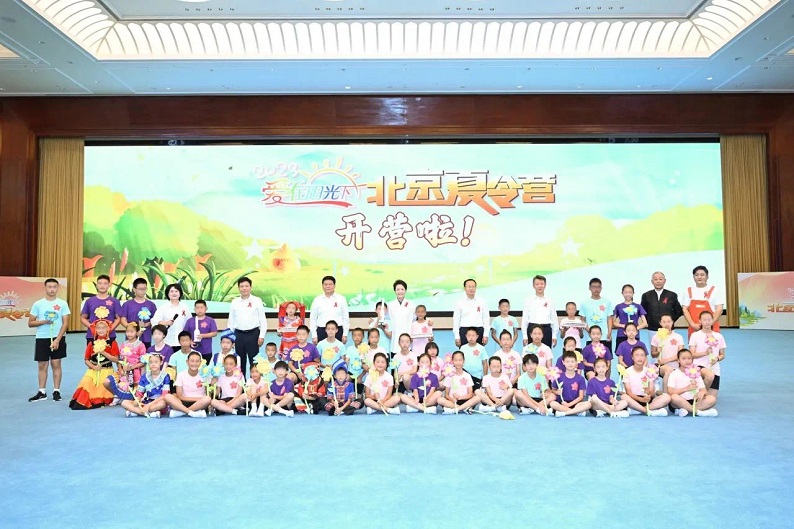 世界卫生组织结核病/艾滋病防治亲善大使彭丽媛在北京中国共产党历史展览馆出席2023年“爱在阳光下”夏令营开营式。