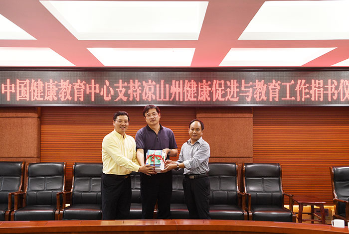 中国健康教育中心向当地赠送健康促进与教育工作用书