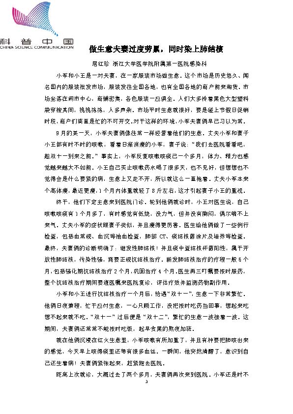 身边的结核病故事——做生意夫妻过度劳累,同时染上肺结核