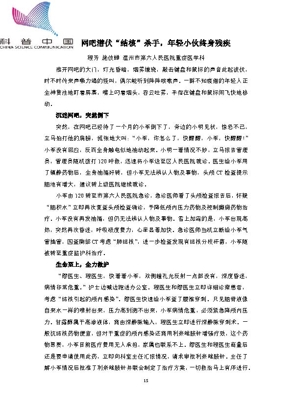 身边的结核病故事——网吧潜伏“结核”杀手,年轻小伙终身残疾