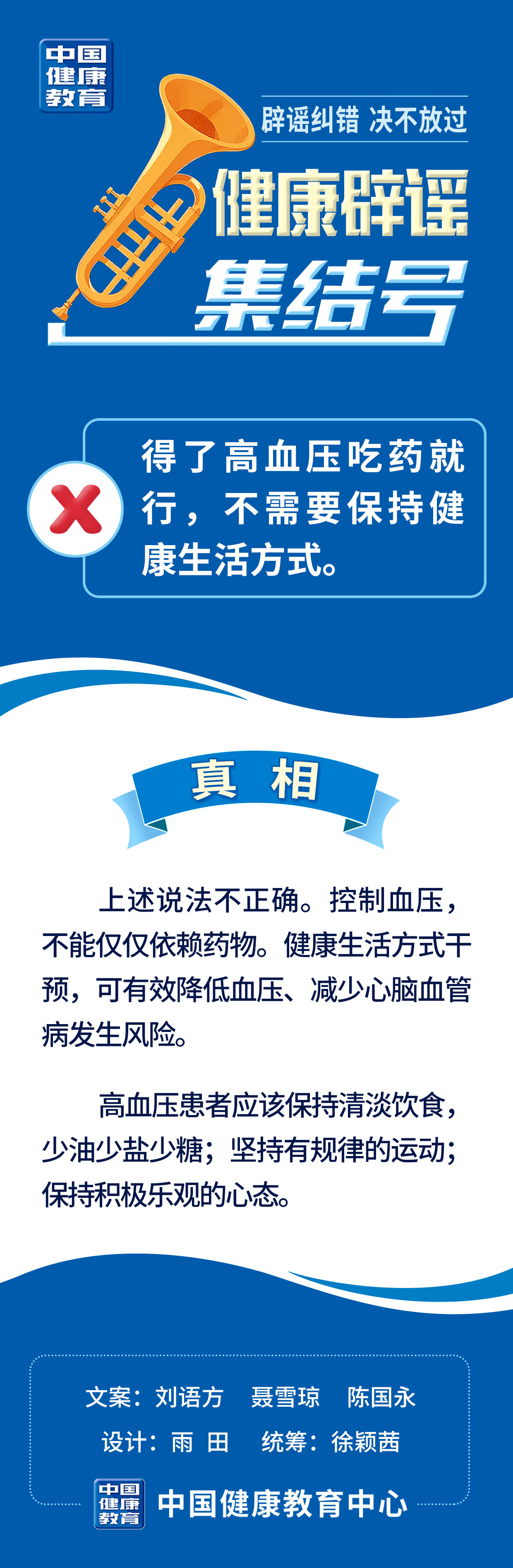 得了高血压吃药就行,不需要保持健康生活方式?丨健康辟谣集结号