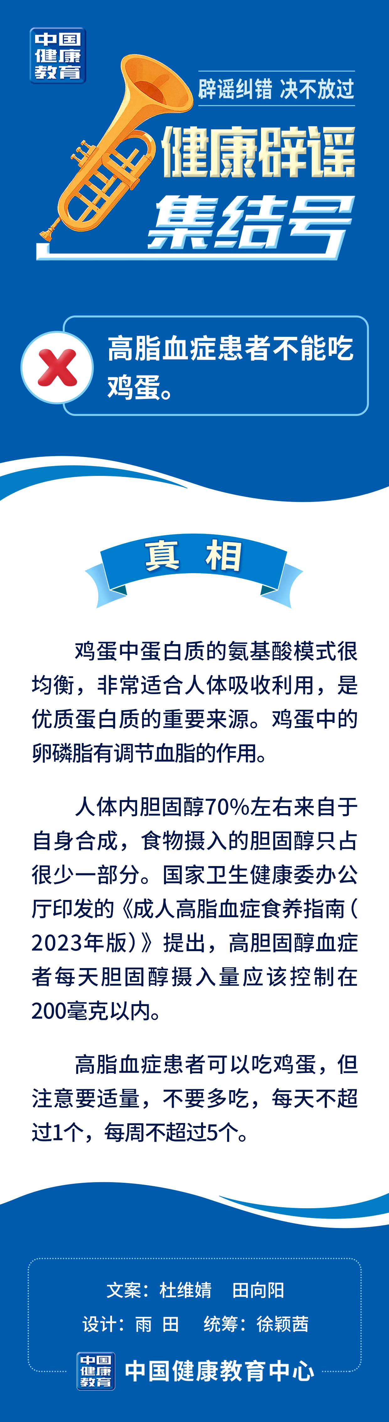 健康辟谣集结号 | 高脂血症患者不能吃鸡蛋
