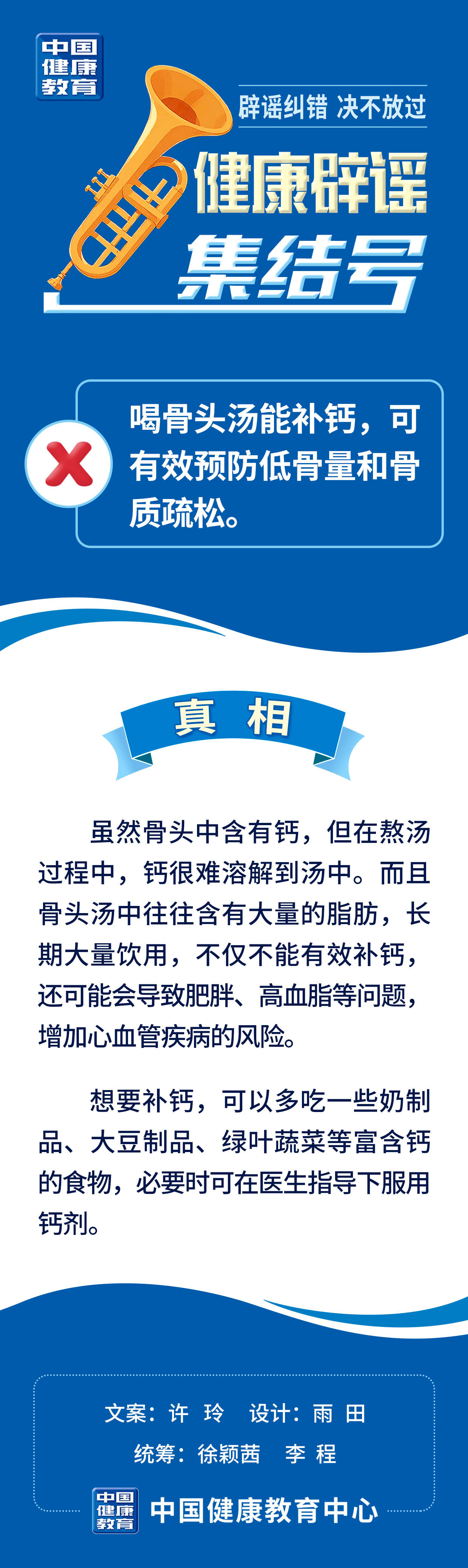 健康辟谣集结号 | 喝骨头汤能补钙,可有效预防低骨量和骨质疏松